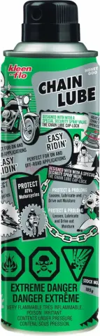 KLEEN-FLO CHAIN LUBRICANT je vysokoúčinný mazací tuk určený pre reťazové prevody ATV, motocyklov, bicyklov a všetky aplikácie s reťazovým pohonom. Zabezpečuje hladký chod reťaze, odpudzuje vlhkosť a nečistoty, zároveň odoláva zmytiu pri čistení a jazde.
