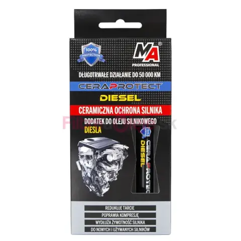 MA PROFESSIONALCARPROTECT DIESEL je keramická (nano-keramická) prísada do motorového oleja pre dieselové motory. Po aplikácii vytvára trvácnu ochrannú vrstvu s veľmi nízkym trením a vysokou odolnosťou, ktorá chráni kritické časti motora pri studených štartoch aj v záťaži. Výsledkom je plynulejší chod, stabilnejší mazací film a kultivovanejšia odozva v každodennej prevádzke.