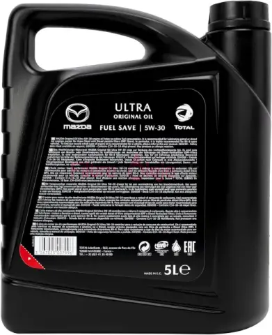 Mazda Original Oil Ultra 5W30, založený na starostlivo vybraných syntetických základových olejoch, je jedným z najobľúbenejších olejov určených pre motory Mazda. Obsahuje balík prísad, ktoré aktívne čistia vnútro kľukovej skrine od usadenín a nahromadenia vytvoreného v procese spaľovania paliva. Mazda Original Oil Ultra 5W30 patrí do skupiny agentov šetriacich palivo - testy v nezávislých laboratóriách, vykonávané podľa Norma M111FE ACEA ukázala spotrebu paliva o 2,55% nižšiu ako konkurenčné oleje v rovnakej triede kvality a viskozity.
