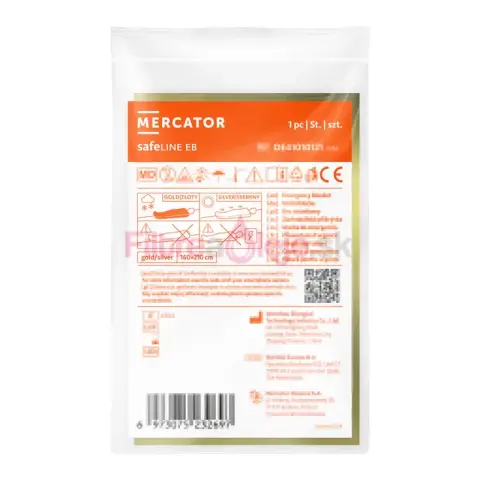 Ľahká NRC/Mylar záchranná fólia určená na spomalenie podchladenia alebo ochranu pred prehriatím v núdzových situáciách. Odráža až do 90 % telesného tepla, je vodoodolná a vetruvzdorná, ideálna do autolekárničiek, outdoor výbavy a záchranárskej praxe.