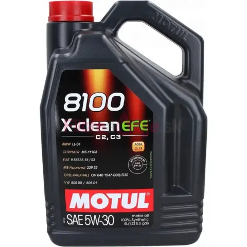 MOTUL 8100 X-CLEAN EFE 5W-30 má syntetické základné zmesi spojené so špecifickými molekulami modifikátora trenia a špeciálne úrovne SAPS, ktoré generujú vynikajúcu odolnosť voči olejovému filmu, znižujú trenie v motore a zaisťujú kompatibilitu zariadenia na dodatočnú úpravu. MOTUL 8100 X-CLEAN EFE 5W-30 prináša vysoké mazacie vlastnosti, ako je ochrana proti opotrebeniu a odolnosť voči vysokým teplotám, pre lepšie kontrolovanú spotrebu oleja. Mazivá ACEA C2 a C3 dosahujú predĺžené intervaly výmeny, ktoré riadi palubný počítač vozidla