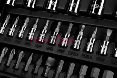 Náradie ponúkané v súprave je vyrobené z kvalitnej chróm-vanádiovej ocele. Vyznačujú sa tiež novým dizajnom rukovätí - protišmykový materiál na račni s prevahou čiernej farby a prídavkom oranžovej farby je praktickým riešením, ktoré dobre poslúži v každej dielni.