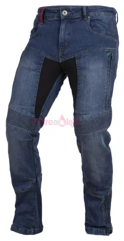 Druhá generácia riflových nohavíc AYRTON 505 prichádza s vylepšením v podobe nových CE certifikovaných protektorov LITE PRO, ktoré sú pružné, ľahké, priedušné a vďaka malej hrúbke aj nenápadné. Vďaka vonkajšej vrstve zo 100% 12-uncového streč denimu Super Stretch sú nohavice komfortné. Rozšírenie ponuky nadrozmerných veľkostí pokrýva aj extra nadrozmerné veľkosti. Krátky zips YKK® #8 umožňuje prepojenie nohavíc s bundou. Uvedené detaily dodávajú týmto všestranným nohaviciam ešte širšie možnosti použitia oproti minulé generácii. Vypraná tmavo modrá povrchová úprava denim obšívky so svetlejším starnutým povrchom.
