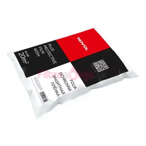 NOVOL ochranná fólia o rozmere 4 m × 5 m je odolný, priehľadný polyetylénový film určený na dočasnú ochranu veľkoplošných povrchov pred nečistotami, striekajúcimi kvapkami laku, prachom a poškriabaním počas lakovacích a karosárskych prác.
