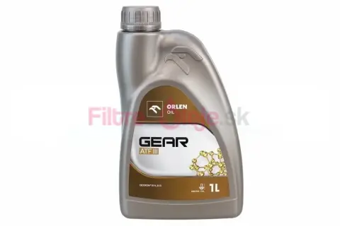 ORLEN OIL GEAR ATF III je polosyntetické automatické prevodové mazivo (ATF) určené pre automatické prevodovky vozidiel, ktorých výrobca odporúča Dexron® III typ oleja. Olej je vhodný aj pre posilňovače riadenia, hydraulické spojky a hydraulické systémy vyžadujúce ATF, prípadne pre niektoré Powershift prevodovky v poľnohospodárskej a stavebnej technike. Tento produkt je súčasťou radu Platinum a je dostupný v praktickom balení 1 l.