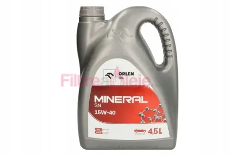 ORLEN OIL MINERAL 15W-40 4.5L je minerálny motorový olej SAE 15W-40 dodávaný v praktickom balení 4,5 l. Olej je určený pre bežné motorové aplikácie, spĺňa označenie API SN a je vyrábaný spoločnosťou ORLEN OIL. Ide o ekonomické riešenie pre údržbu motorov, kde výrobca povoľuje použitie minerálneho oleja 15W-40.