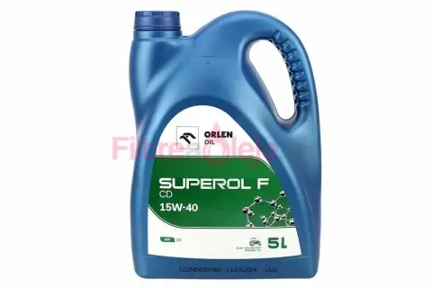 ORLEN OIL SUPEROL F 15W-40 je viacstupňový motorový olej s viskozitou SAE 15W-40, určený na mazanie štvortaktných benzínových i dieselových motorov. Praktické 5 L balenie je vhodné pre dopĺňanie oleja v dielni aj pre domáce použitie.