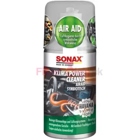 SONAX KLIMA POWER CLEANER je rýchly a praktický prípravok na čistenie klimatizácie, vetracích systémov a výparníka. Pomáha zabezpečiť dlhodobejšiu hygienu vzduchu v interiéri a účinne redukuje nepríjemné pachy, pričom zanechá príjemnú vôňu Havana. Aplikácia je jednoduchá a vozidlo je spravidla pripravené na jazdu už približne po 10 minútach – bez zložitej demontáže.
