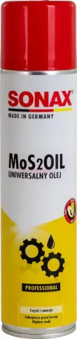 Sonax MoS 2 Multifunkčný olej 400 ml je univerzálny mazací a uvoľňovací sprej pre dielňu, auto aj domácnosť. Je určený na mazanie styčných a klzkých plôch, uvoľňovanie zhrdzavených spojov, ochranu elektrických kontaktov a kovových dielov pred vlhkosťou a koróziou.