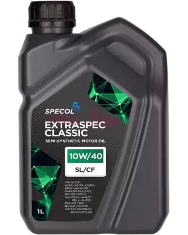 SPECOL EXTRASPEC CLASSIC SL/CF 10W/40 1L je polosyntetický (semi-synthetic) viacstupňový motorový olej pre benzínové aj naftové motory (s/bez turba). Vhodný pre moderné aj staršie konštrukcie s katalyzátorom, poskytuje spoľahlivú ochranu a čistotu motora v rôznych prevádzkových podmienkach.
