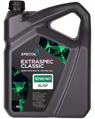 SPECOL EXTRASPEC CLASSIC SL/CF 10W/40 4L je polosyntetický (semi-synthetic) viacstupňový motorový olej pre benzínové aj naftové motory (s/bez turba). Vhodný pre moderné aj staršie konštrukcie s katalyzátorom, poskytuje spoľahlivú ochranu a čistotu motora v rôznych prevádzkových podmienkach.