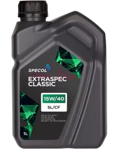 SPECOL EXTRASPEC CLASSIC SL/CF 15W/40 1L je minerálny viacstupňový motorový olej pre benzínové aj naftové motory (s/bez turba). Je vhodný pre moderné aj staršie konštrukcie s katalyzátorom a poskytuje spoľahlivú ochranu v rôznych prevádzkových podmienkach.