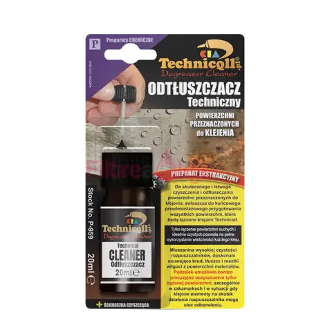 Vysoko kvalitný univerzálny rozpúšťadlo určené na dôkladné vyčistenie povrchov pred lepením a montážou. Rýchlo odstraňuje nečistoty, mastnotu a zvyšnú vlhkosť a nezanecháva olejový film ani iné znečisťujúce zvyšky, ktoré by zhoršovali priľnavosť lepidiel a tmelov.