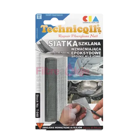 TECHNICQLL Fiberglass Net je pevná a odolná sklenená sieťka určená na vnútorné spevnenie spojov a adhezívnych vrstiev. Špeciálne odporúčaná na použitie s epoxidovými a termickými lepidlami, zvyšuje únosnosť a zabraňuje praskaniu v miestach namáhania.