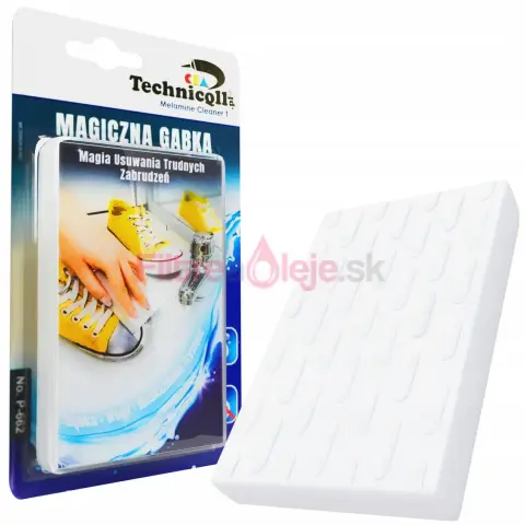 Univerzálna čistiaca pomôcka vyrobená z melamínu – materiálu s vysokým obsahom dusíka, ktorý v pevnom stave pôsobí ako jemné, no účinné abrazívum. Dokáže odstrániť aj odolné škvrny bez použitia chemických prostriedkov, iba pomocou vody.