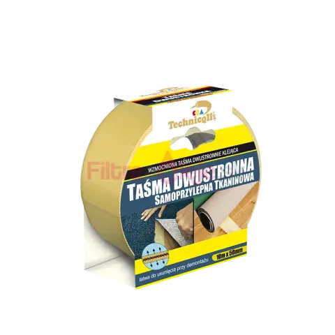 TECHNICQLL Reinforced Double Sided Tape je pevná obojstranná páska s integrovanou textilnou výstužou, navrhnutá pre trvácne lepenie pri súčasnej možnosti jednoduchého demontovania bez poškodenia povrchu. Ideálna pre montáž kobercov, dekorácií a ďalších prvkov, kde je potrebná silná priľnavosť aj jednoduché odstránenie.