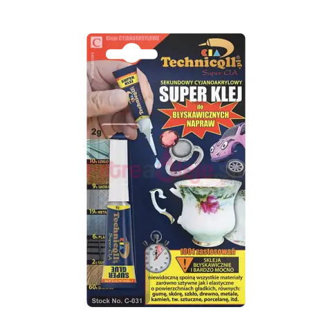TECHNICQLL Super Glue je vysoko účinné sekundové lepidlo s nízkou viskozitou, ktoré je ideálne na rýchle a presné lepenie malých plôch. Vytvára pevný, neviditeľný a bezfarebný spoj v priebehu niekoľkých sekúnd. Perfektné na drobné opravy v domácnosti, dielni či kancelárii.