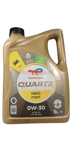 TOTAL QUARTZ INEO FIRST 0W-30 je moderný plne syntetický viacstupňový motorový olej navrhnutý pre najnovšie benzínové a dieselové motory vrátane motorov s turbom a systémami redukcie emisií. Formulácia zabezpečuje rýchlu cirkuláciu oleja pri studenom štarte, spoľahlivú ochranu proti opotrebovaniu a optimalizovanú spotrebu paliva pri dlhých servisných intervaloch. Produkt spĺňa normy ACEA C2 a API SN PLUS, čo zaručuje kompatibilitu s modernými technológiami motora a ochranu proti nízkootáčkovému predzápalu (LSPI).