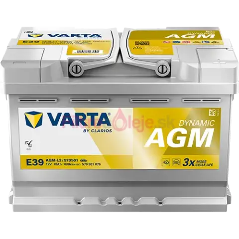 Varta Silver Dynamic AGM 12V 70Ah 760A pre energeticky náročnejšie vozidlá s vyššou výbavou a pre technológie „start-stop“ pripravil osvedčený výrobca batérií VARTA prémiový rad Silver Dynamic. Ponúka vyšší štartovací výkon ako rad Blue Dynamic a stabilnú dodávku elektriny do všetkých spotrebičov automobilu, a to aj v zime. Pýši sa rýchlym nabíjaním, zvýšenou odolnosťou proti korózii a hlbokému vybitiu i ochranou proti nebezpečnému vyliatiu elektrolytov.