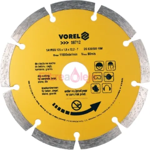 Opýtajte sa nás ohľadom produktu: Vorel - Kotúč rezný diamantový Ø125x22.2x1.8mm segmentový