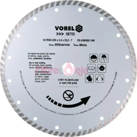 Opýtajte sa nás ohľadom produktu: Vorel - Kotúč rezný diamantový Ø230x22.2x2.4mm turbo