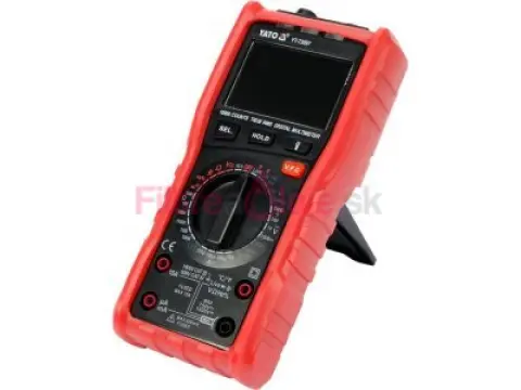 YT-73097 univerzálny meter s funkciou TRUE RMS unikátneho dizajnu s automatickým a manuálnym rozsahom merania. Umožňuje vykonávať základné a pokročilé merania elektrických veličín. Veľký multifunkčný LCD displej umožňuje v niektorých režimoch merania zobraziť dve hodnoty súčasne, napríklad napätie a frekvenciu zo sieťovej zásuvky. Puzdro je vybavené červeným gumeným puzdrom s vyhradenými miestami pre meracie sondy, vďaka čomu vám merací prístroj len tak ľahko nevykĺzne z rúk a minimalizuje riziko poškodenia pri páde. Moderný dizajn dosky a špeciálny softvér znamenajú nielen rýchlosť, presnosť a opakovateľnosť indikácií, ale aj zvýšenú úroveň bezpečnosti, o čom svedčí získanie certifikácie CAT IV až do 600V.