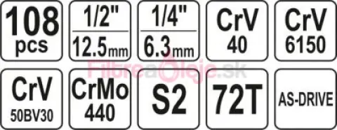 Opýtajte sa nás ohľadom produktu: Yato - Gola sada 1/2", 1/4" +príslušenstvo 108ks