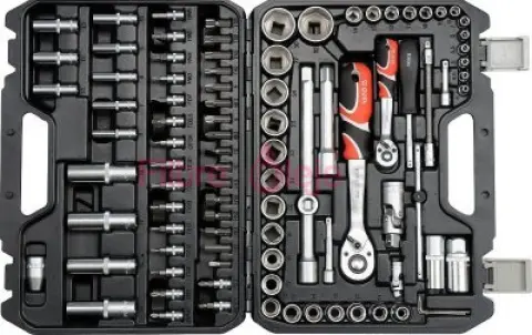 Gola sada 1/2" a 1/4" obsahuje 94ks: nástavcov, predlžovacích nástavcov, ráčne s plastovou rukoväťou a ďalšie príslušenstvo.