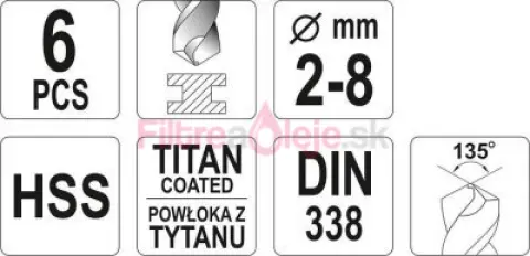 Opýtajte sa nás ohľadom produktu: Yato - Sada vrtákov do železa HSS-TIN 2, 3, 4, 5, 6, 8mm 6ks